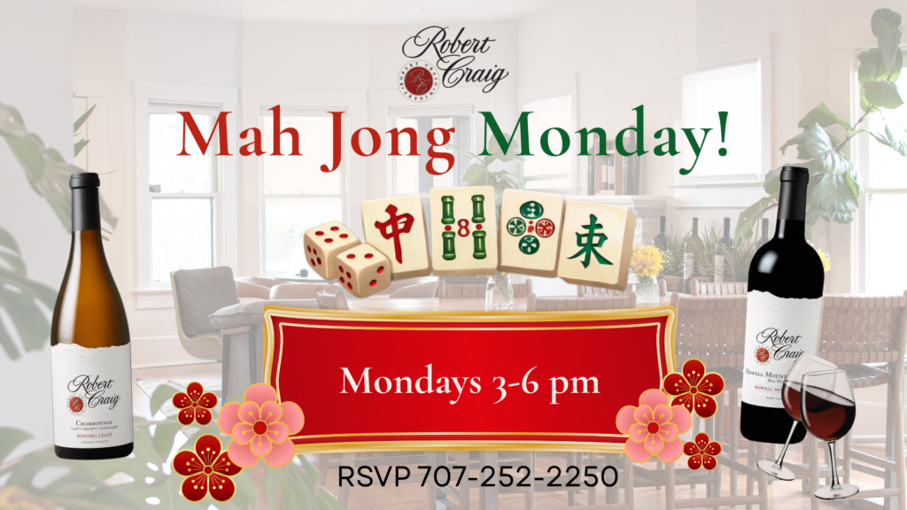 Mah Jong Mondays at the Robert Craig Winery Salon are designed to be low key, welcoming, and social. Whether you’re experienced or learning for the first time, all levels are invited.