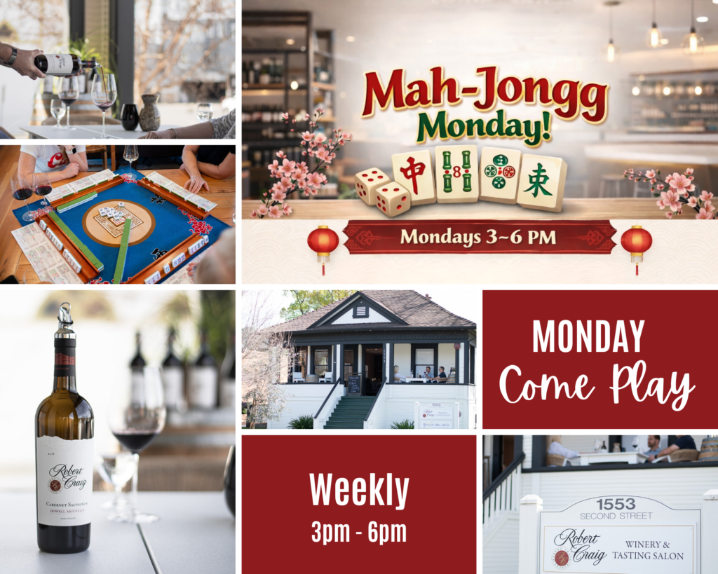 Mah Jong Mondays at the Robert Craig Winery Salon are designed to be low key, welcoming, and social. Whether you’re experienced or learning for the first time, all levels are invited.